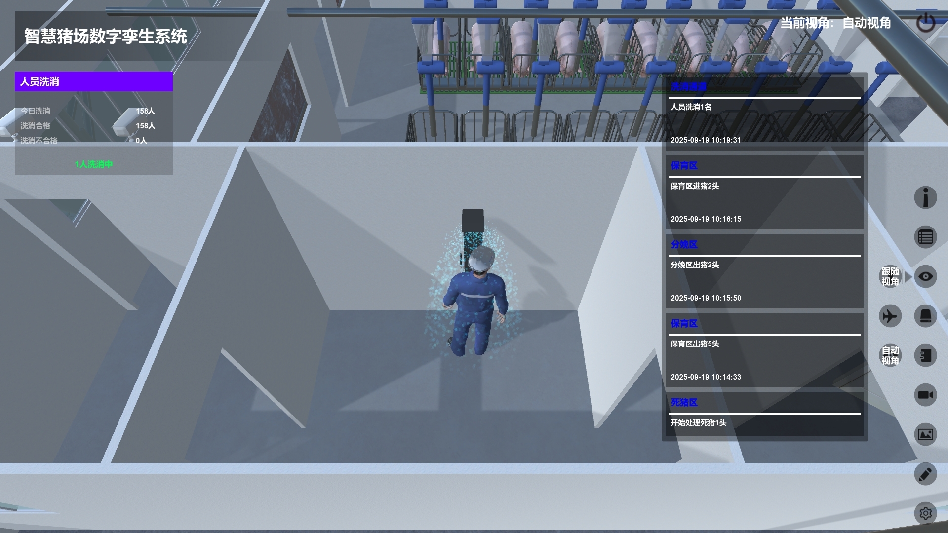 系統支持三種視角模式參觀、管理豬場。
