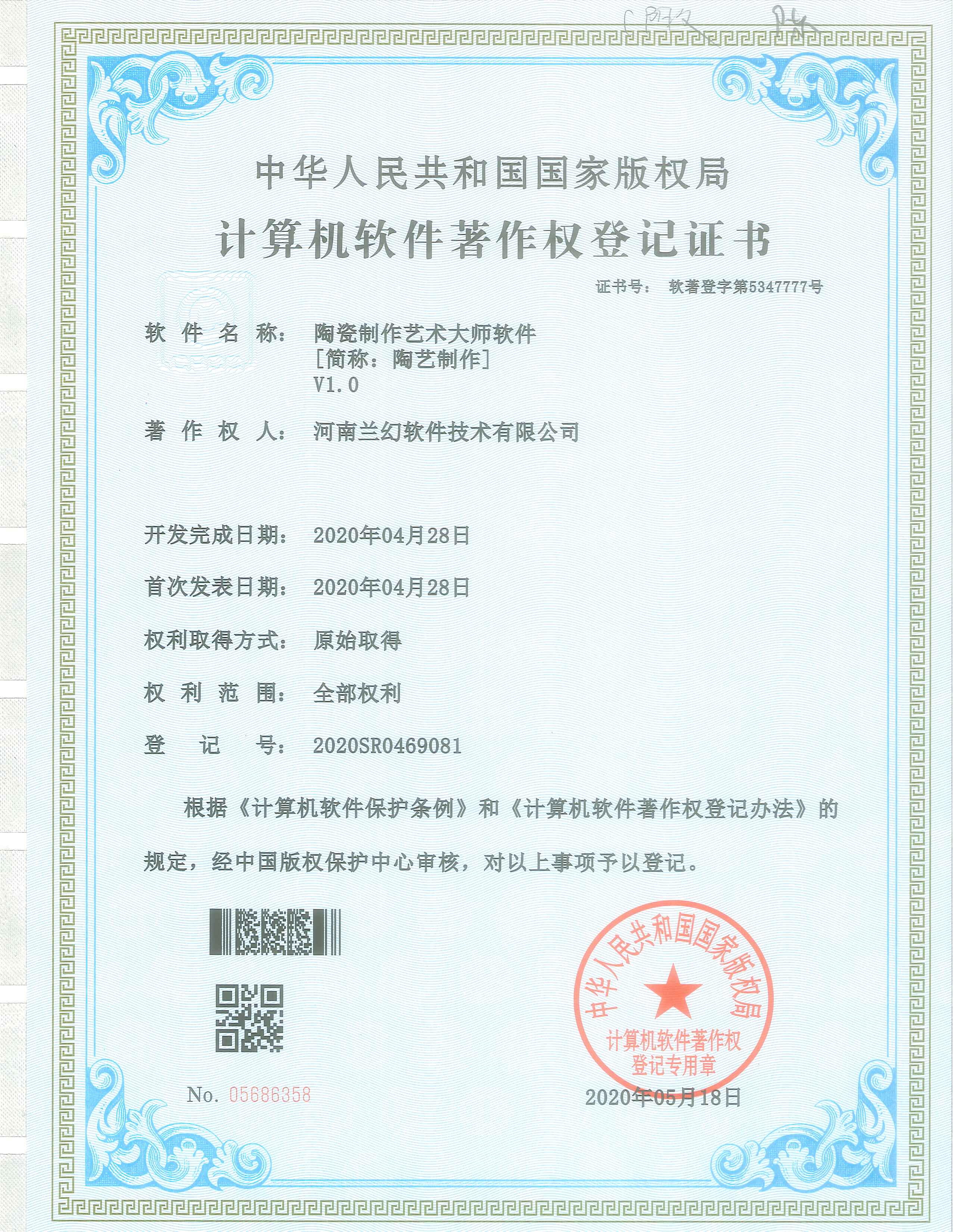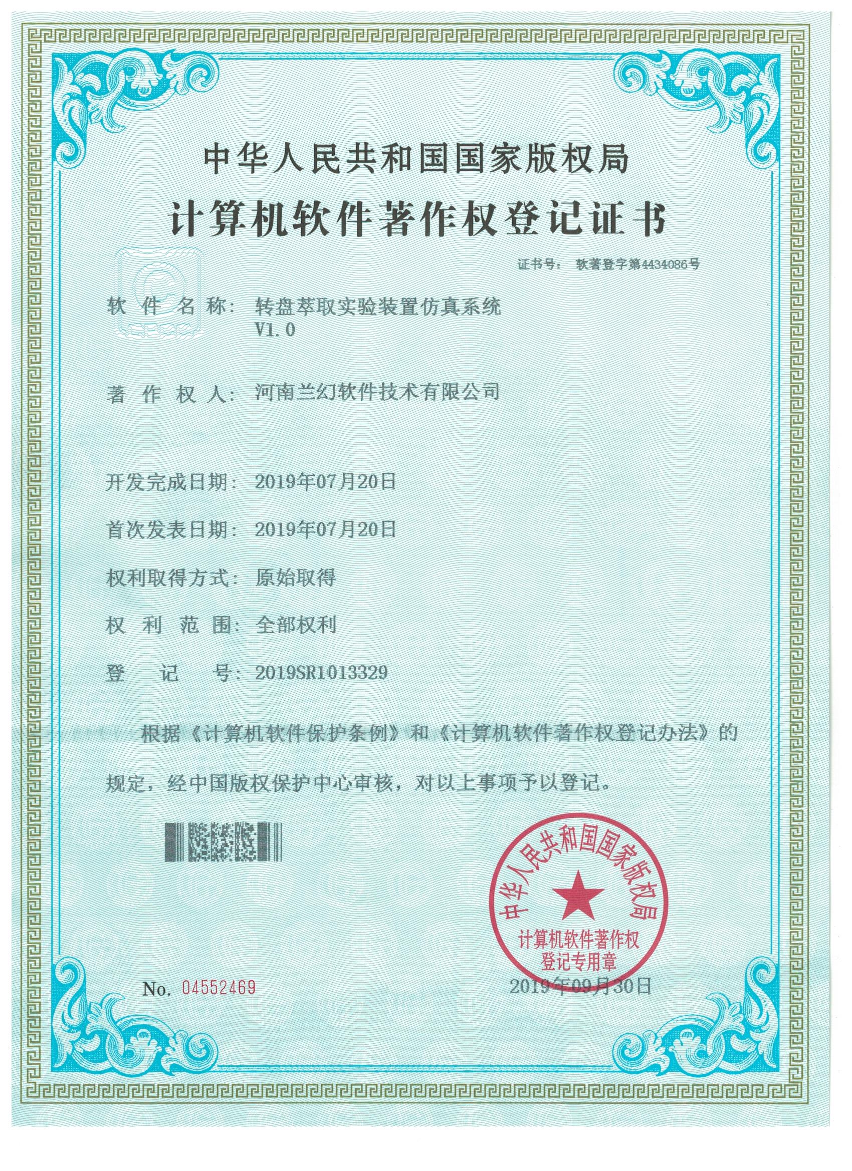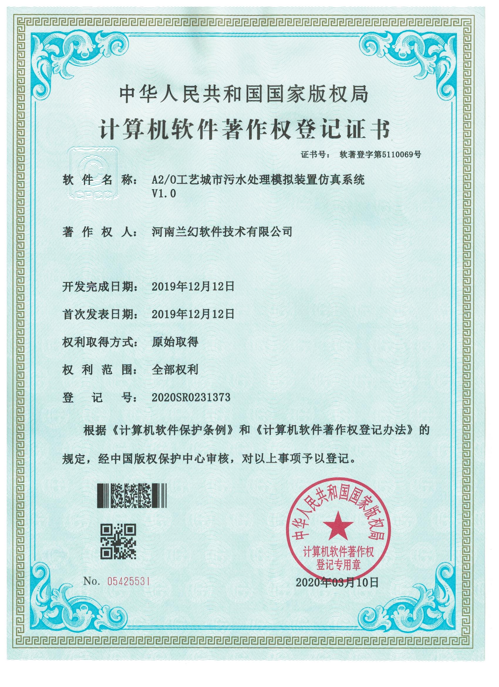 A2/0工藝城市污水處理模擬裝置仿真系統(tǒng) 轉(zhuǎn)盤萃取實(shí)驗(yàn)裝置仿真系統(tǒng)著作權(quán)證書 陶瓷制作藝術(shù)大師軟件著作權(quán)證書